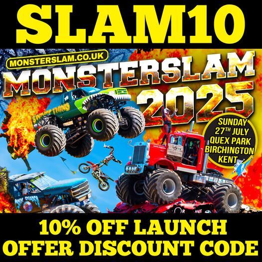 Monsterslam returns to Quex Park on Sunday27th July and expect new extreme stunts and TWO more monster trucks will be coming along - one of them you can take a ride in!